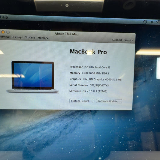 2012 Apple MacBook Pro 13.3" i5 2.5GHz 4GB RAM 500GB HDD Silver