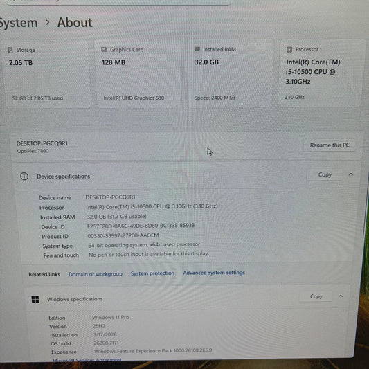Dell Optiplex 7090 D15S Core i5-10500 3.10GHz 32GB RAM 256GB SSD 2TB HDD